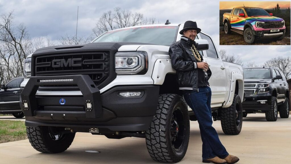 “That stupid gay rainbow thing? That Ain’t even a real truck.” The big screen then showed Kid next to his massive GMC Silverado, which is definitely not at all gay.