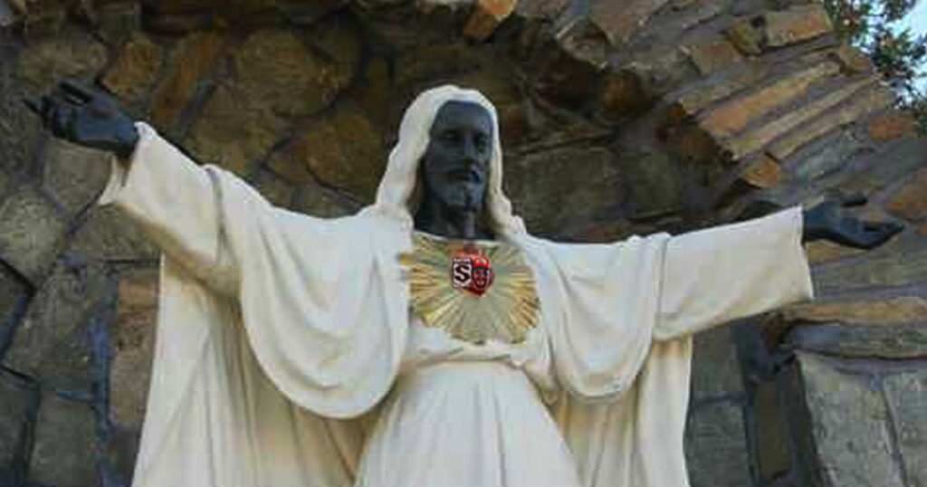 In Seattle, a long-standing sculpture of Christ Our Lord and Savior, at the Church of Balthazar was desecrated yesterday, presumably by Antifa thugs.