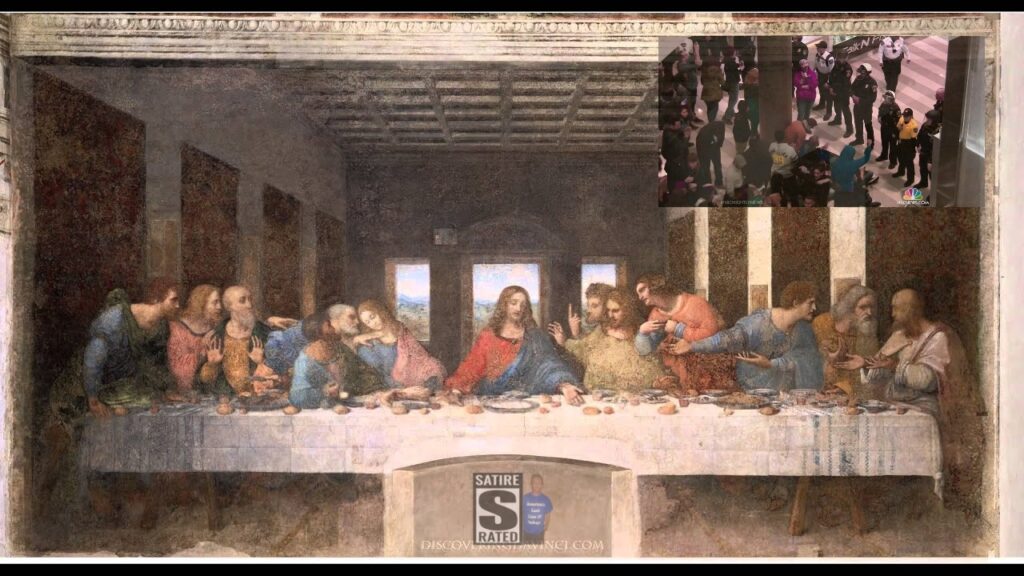 During a rare travelling art exhibition this weekend, a terrible act of vandalism was narrowly avoided, as police and museum authorities stopped several out-of-control protesters who had broken into New York’s Joeseph Barron Metropolitan Museum and were in the midst of attempting to set fire to Leonardo DaVinci’s priceless painting, The Last Supper.