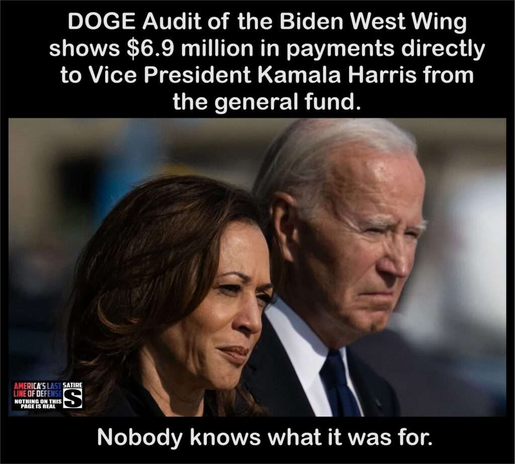 Washington, D.C. – In a recent audit, the Department of Government Efficiency (DOGE) has uncovered that Vice President Kamala Harris received $9 million in payments from the general fund. The expenditures, detailed in the audit report, reveal a series of peculiar and extravagant purchases that have left taxpayers scratching their heads.