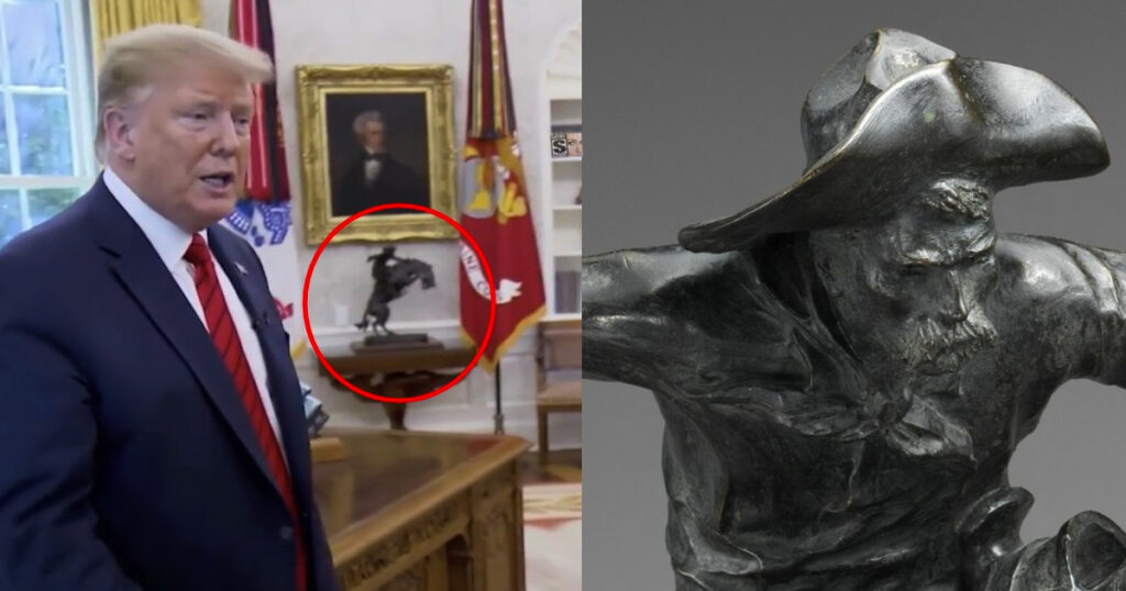 The statue that was sculpted by the famed Frederick Remington called bronco buster and was also a favorite piece of Obama’s, is now in a disheveled state of disrepair.