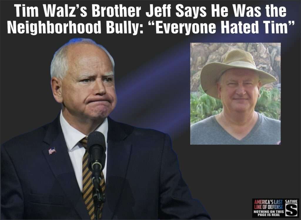 Jeff Walz, the brother of Vice-Presidential candidate Tim Walz, has opened up about his brother’s brutal nature. “Tim was a bully,” said the brother, according to our source, “Nobody liked him.”