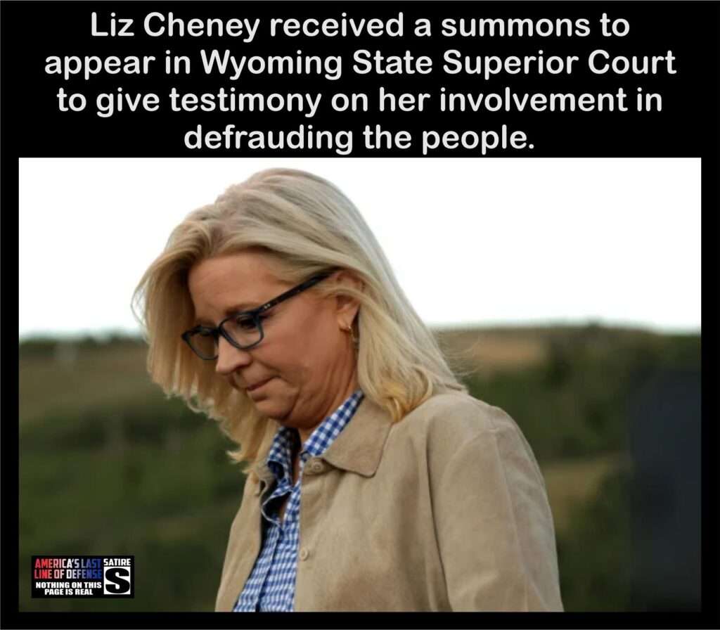 Cheyenne, WY – In a dramatic turn of events, former Congresswoman Liz Cheney has been summoned to a Wyoming court to answer shocking allegations of fraud and disloyalty to the crown—a legal precedent not seen since the Great Wyoming Monarchy was established in… well, never.