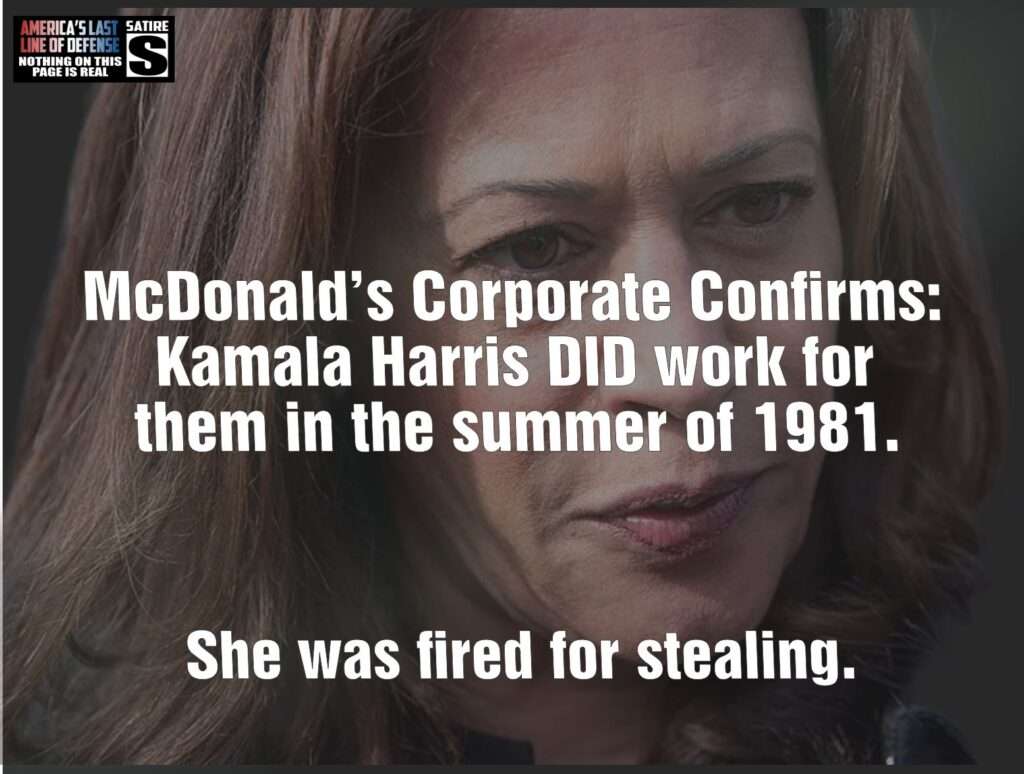 McDonalds Corporate Confirms: Kamala Harris Was Fired From the Company for Stealing